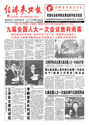 | 2003年3月11日《經(jīng)濟參考報》頭版刊登了《國務(wù)院機構(gòu)改革方案》,見證了第五次政府機構(gòu)改革。當(dāng)日,十屆全國人大一次會議第三次全體會議通過了關(guān)于國務(wù)院機構(gòu)改革方案的決定。改革方案特別提出了“決策、執(zhí)行、監(jiān)督”三權(quán)相協(xié)調(diào)的要求。除國務(wù)院辦公廳外,國務(wù)院29個組成部門經(jīng)過改革調(diào)整為28個,不再保留國家經(jīng)貿(mào)委和外經(jīng)貿(mào)部,其職能并入新組建的商務(wù)部。 |