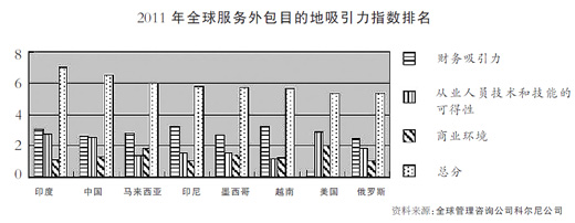 上述數(shù)據(jù)表明,受歐債危機(jī)、美元持續(xù)貶值和全球性通貨膨脹的影響,全球服務(wù)外包行業(yè)雖然還沒(méi)有恢復(fù)到國(guó)際金融危機(jī)爆發(fā)以前的水平,但正處于產(chǎn)業(yè)恢復(fù)和快速發(fā)展時(shí)期。