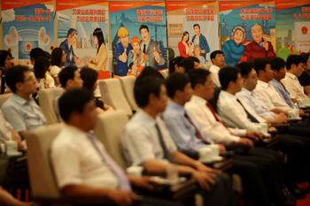 7月4日,《中華人民共和國社會(huì)保險(xiǎn)法》宣傳周啟動(dòng)。圖為在人民大會(huì)堂舉行的宣傳周啟動(dòng)儀式現(xiàn)場(chǎng)。記者 金立旺
