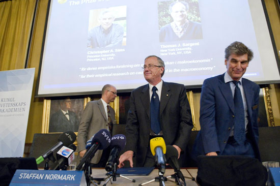 評選委員會聲明說,盡管薩金特和西姆斯各自展開研究,但其成果形成互補。自上世紀70年代開始,他們的研究成果已在全球范圍內(nèi)被廣泛采用,如今已成為宏觀經(jīng)濟分析的必要工具。