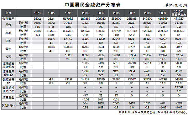 統(tǒng)計(jì)顯示,2010年末之前,在我國(guó)居民各項(xiàng)金融資產(chǎn)中,儲(chǔ)蓄存款的實(shí)際收益率是最低的,次低的是國(guó)債,股票最高。從我國(guó)居民金融資產(chǎn)增長(zhǎng)率數(shù)據(jù)來(lái)看,收益率對(duì)投資的影響是相當(dāng)明顯的,即收益最大的資產(chǎn)增速最高,收益次高的資產(chǎn)增速次高,依此類(lèi)推。