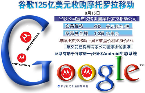2011年8月,谷歌宣布斥資125億美元收購(gòu)摩托羅拉移動(dòng)。