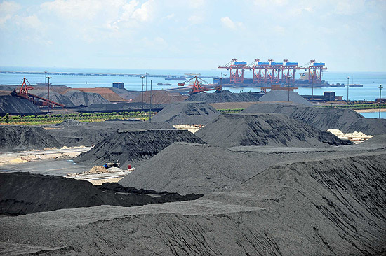 最近國內(nèi)鋼材、煤炭等大宗商品價格大幅下跌,買方不愿接貨,而賣方會千方百計交貨,容易引發(fā)糾紛。圖為七月底廣西防城港堆放著的大量煤炭。記者