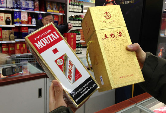 茅臺和五糧液公司因價格壟斷被罰4.49億元,創(chuàng)我國反壟斷史上最大罰單。發(fā)展改革委價格監(jiān)督檢查與反壟斷局副局長張光遠透露,到3月11日前兩公司已全額繳納罰款,相關(guān)案件已結(jié)案。 圖為商店銷售的茅臺酒與五糧液酒。記者