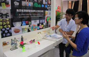 8月15日,在北京舉行的2013年中國(guó)互聯(lián)網(wǎng)大會(huì)上,上拓3D打印體驗(yàn)館的工作人員在展廳中向觀眾介紹3D打印的相關(guān)產(chǎn)品與技術(shù)。新華社發(fā)(史陽(yáng)琨/攝) |