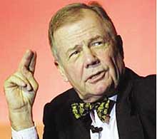 羅杰斯不遠(yuǎn)萬(wàn)里,到中國(guó)實(shí)地調(diào)查公司的經(jīng)營(yíng)狀況,我們的一些投資者甚至連這家公司干什么都不知道,就敢把錢(qián)送給人家。羅杰斯來(lái)了,他讓我們得到了一個(gè)向投資大師學(xué)習(xí)的機(jī)會(huì),沒(méi)有成熟的投資者,就沒(méi)有健康的中國(guó)股市,讓我們向羅杰斯先生學(xué)習(xí)投資。 。〒(jù)1月24日央視“經(jīng)濟(jì)半小時(shí)”) |