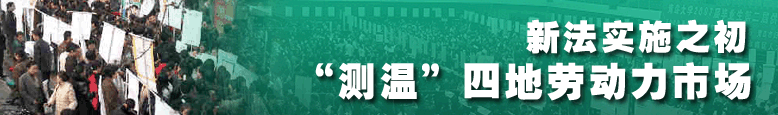 在勞動(dòng)合同法“構(gòu)建勞資關(guān)系新格局”的起步階段,恰逢節(jié)后求職季節(jié)的來(lái)臨,人才招聘市場(chǎng)的熱度如何?廣大勞動(dòng)者對(duì)新法給予就業(yè)“飯碗”的呵護(hù),還有哪些期待? 3月2日上午,位于上海萬(wàn)體館的綜合人才招聘會(huì)現(xiàn)場(chǎng)人頭攢動(dòng)。記者從上海各大人才招聘市場(chǎng)獲悉,自春節(jié)后2月17日至2月底,上海各類招聘會(huì)已舉行了近百場(chǎng),數(shù)量和規(guī)模為歷年來(lái)最多。據(jù)統(tǒng)計(jì),在過去半個(gè)月內(nèi),招聘企業(yè)共推出10余萬(wàn)個(gè)崗位,吸引了近30萬(wàn)名求職者。“‘金三銀四’明顯前移了。”上海新發(fā)現(xiàn)人才服務(wù)公司總經(jīng)理劉保存說。在人才市場(chǎng)上,每年的3月、4月往往是招聘高峰,被稱為“金三銀四”。有跡象表明,今年的招聘高峰比往年來(lái)得更早,大大小小的招聘會(huì)在2月份就已“扎堆”舉行。[詳情] | | |