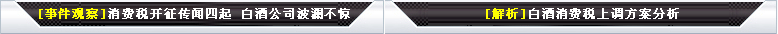 | 香煙消費稅大幅度提高后,白酒消費稅也面臨著上調(diào)。盡管白酒消費稅調(diào)整方案尚未正式發(fā)布,從各種跡象來看,“結(jié)構(gòu)性增稅計劃”已悄然從香煙和白酒開始。今年3月份,國家權(quán)威人士就放出口風(fēng),倘若出現(xiàn)財政收入不能完成計劃的情況
