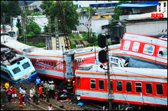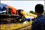 | 印度尼西亞楠榜省2008年08月16日發(fā)生兩列火車相撞事故。當?shù)鼐秸f,至少有8人在事故中遇難,另有26人受重傷、33人受輕傷。事故原因仍在調(diào)查中。印尼的鐵路交通相對落后且管理較差,火車相撞或火車與汽車相撞的事故經(jīng)常發(fā)生。[詳細] | |