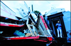 | 2008年09月14日,洛杉磯火車相撞事故現(xiàn)場的搜尋遇難者工作已經(jīng)結(jié)束。12日下午4時30分左右,正值交通高峰期,一列搭乘了225名乘客的洛杉磯通勤客運列車行駛到距離市中心約40公里的卡茲沃斯時,在一個彎道處與一輛貨運列車猛烈相撞。[詳細] | |