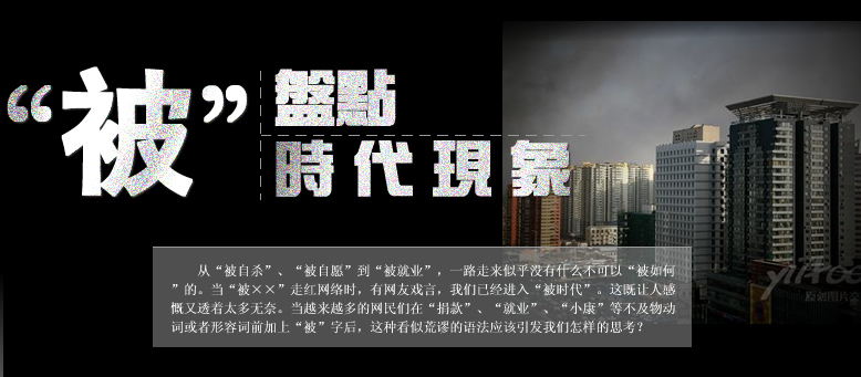 一個(gè)又一個(gè)“被”字短語(yǔ)的出現(xiàn),凸顯出種種數(shù)字游戲之下的中國(guó)式“假大空”。Web2.0時(shí)代的網(wǎng)民話語(yǔ)權(quán),把“被”字裝到了放大鏡中。[詳情]