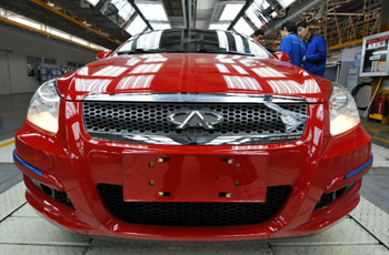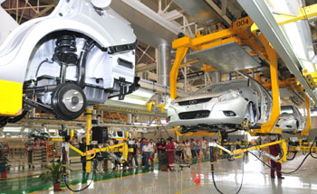 安徽省肥西縣江淮汽車乘用車生產(chǎn)車間。新華社發(fā)(徐勇攝) |