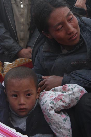 新華社記者在災(zāi)區(qū)現(xiàn)場遇到了幾位來自四川甘孜藏族自治州的藏族同胞,他們是自發(fā)趕來的。42歲的根桑曲扎告訴記者:“我們幾位朋友是到成都辦事的,聽說玉樹發(fā)生地震了,心里很想去幫忙,但一是路途太遠趕不及,二是也聽說了當(dāng)?shù)卣粲踔驹刚卟灰つ壳巴鶠?zāi)區(qū),我們也怕給當(dāng)?shù)靥砺闊。聽說這里要接收傷員,我們就過來幫忙了。” 4月15日17時54分,第一批16名傷員順利抵達華西醫(yī)院。新華社記者在現(xiàn)場看到,這批傷員大多數(shù)均為藏族,傷情較為嚴(yán)重,每人手背上都貼上了紅色標(biāo)簽,標(biāo)明了姓名、性別、年齡和基本傷情。 39歲的藏族傷員擁措地震時被埋在了廢墟下,造成左臂骨折,幸虧她的親戚在半個小時后將她挖了出來。擁措的眼里含滿了劫后余生的淚水,喃喃地說:“全身都痛。”在一位藏族志愿者的翻譯下,一名醫(yī)生和護士對她進行了詳細的傷情、病史了解記錄。 青海玉樹發(fā)生7.1級地震后,相鄰的甘肅省立即行動,組織了甘肅省應(yīng)急救援總隊前往救援,第一批隊伍在4月14日中午2時30分就已經(jīng)出發(fā)趕赴災(zāi)區(qū)。新華社記者14日晚7時許趕上了第二批救援人員的車輛。從蘭州前往玉樹有1000多公里,甘肅救援總隊準(zhǔn)備徹夜趕路,車上人員一夜未睡,司機輪班開車,隊員吃喝都在車上。 沿途,拉運全國各地的救援人員和救災(zāi)物資的車輛都在急速向西。一路上,西北原本少有人煙和車輛稀少的公路上變得十分繁忙,各種救災(zāi)車輛首尾相連形成長長的運輸長龍,許許多多閃爍的車燈劃寒冷的黑夜。 高原的夜晚十分寒冷,車窗上的水汽都凍成了冰刮也刮不掉。后半夜救援隊員不得不加穿軍大衣。水和火腿腸凍得冰冷,隊員們不得不將其放在懷里,捂熱再吃。高原的寒冷和高原反應(yīng)可能成為救援的一大障礙,因為個別隊員已有高原反應(yīng)。 車隊進入青海,是玉樹地震發(fā)生12小時之后,但是沿途已能看到一些青海省為抗震救災(zāi)做的安排:救援綠色通道開通了,每到岔路口都有交警在寒夜值守、指路,一些飯館還掛出免費提供熱水的牌子。 經(jīng)過約20個小時的奔波,新華社記者最終隨甘肅救援人員進入玉樹州府所在地結(jié)古鎮(zhèn)。眼前的景象令甘肅救援隊員心情沉重,大量土木結(jié)構(gòu)的房屋倒塌,一些新建的框架結(jié)構(gòu)的房屋雖然還保持原樣,但房屋也是遍體傷痕,裂痕明顯。 新華社記者看到,人們大量聚集在街頭,在廣場、體育館等開闊地帶,民政帳篷已搭建起來。到達災(zāi)區(qū)的各地救援人員,工作有序,各地救援人員分成小組,自覺選擇一些坍塌嚴(yán)重、有可能存在幸存者的大片廢墟進行救援。 大街上,除了大量救援車輛,一些當(dāng)?shù)鼐用褚苍诠蛡蜍囕v,搬運從廢墟中刨出的家當(dāng)。盡管人們臉上充滿了憂傷的表情,但整個小鎮(zhèn)上秩序井然,人們或守在自家的廢墟前,或引導(dǎo)救援人員尋找幸存者,或者從廢墟中主動撿拾自家的家當(dāng),還有的互相安慰。 |