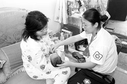 2007年9月,浙江省舟山市某社區(qū)衛(wèi)生服務(wù)中心醫(yī)生周松娜,來到民工產(chǎn)婦趙芯家中,進(jìn)行免費(fèi)測(cè)量體溫、量血壓,并傳授家庭護(hù)理新生兒的技術(shù)。胡社友