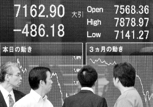 盡管日本經(jīng)濟(jì)增長(zhǎng)放緩,但日本的金融體系迄今為止并未受到金融危機(jī)最嚴(yán)重沖擊,該國(guó)的銀行業(yè)也并未爆發(fā)大型破產(chǎn)事件。但是,連續(xù)跳水的股市卻正在給日本的銀行帶來壓力,本月以來,日股市值已損失三分之一,可能成為有史以來?yè)p失最慘重的一個(gè)月。