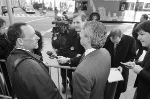 | 12日,紐約曼哈頓聯(lián)邦法庭外,伯納德·L·麥道夫投資證券公司的投資者代表接受采訪。傳真圖 | 一場金融海嘯令貝爾斯登、雷曼這樣的金融巨頭紛紛倒下,這樣的局面足以讓華爾街的投資者們痛心。然而這場海嘯還掀出了更令人瞠目結(jié)舌的驚天騙局。美國檢察人員日前指控納斯達克股票市場公司前董事會主席伯納德·麥道夫在過去20年中,通過操縱一支對沖基金令投資者蒙受大約至少500億美元的損失。紐約時報發(fā)表評論稱,這可能是“華爾街歷史上最大的欺詐案”。 分析人士指出,麥道夫一案反映出證券投資行業(yè)監(jiān)管不力的問題。即使從普通投資者的角度看,麥道夫的騙局也并不是毫無破綻。在近20年的時間里,無論熊市、牛市,麥道夫管理的投資基金如上了發(fā)條一般始終保持每月增長約1%,這并不合情理。