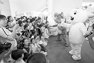 在中國濟南國際兒童聯(lián)歡節(jié)暨兒童用品博覽會上,“喜羊羊與灰太狼”與兒童們零距離接觸。俄國慶