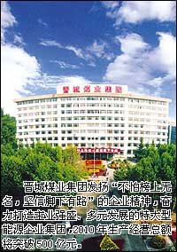 2006年,晉城煤業(yè)集團(tuán)按照“煤、氣、電、化”綜合發(fā)展,建設(shè)環(huán)保型綠色礦山的中長期發(fā)展規(guī)劃,同心同力,奮力超越,科學(xué)發(fā)展,取得了豐碩的發(fā)展成果。2006年中國企業(yè)500強(qiáng)排名,晉城煤業(yè)集團(tuán)由原來的第274位躍升至168位;2006年中國煤炭企業(yè)100強(qiáng)排名,晉城煤業(yè)集團(tuán)由第13位躍升至第7位;晉城煤業(yè)集團(tuán)煤炭產(chǎn)品“藍(lán)焰”商標(biāo)被國家工商部門認(rèn)定為中 國馳名商標(biāo),“藍(lán)焰”牌無煙煤“洗中塊”被批準(zhǔn)為“免檢產(chǎn)品”。在取得良好社會效益的同時,企業(yè)經(jīng)濟(jì)規(guī)模、經(jīng)濟(jì)運(yùn)行質(zhì)量和效益持續(xù)穩(wěn)步增長。截止到2006年底,集團(tuán)公司總資產(chǎn)323.41億元,同比增長25.98%;全年實現(xiàn)生產(chǎn)經(jīng)營總額225.46億元,同比增長24.09%;全年實現(xiàn)利潤12.38億元,同比增長19.73%;全年上繳稅費(fèi)19.8億元,同比增長3.5%。