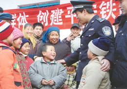 針對全國鐵路第六次大面積提速,濟南鐵路公安處聊城車站派出所深入鐵路沿線村莊,開展“關(guān)注鐵路安全,創(chuàng)建沿線村莊平安鐵路”主題宣傳教育活動,提高村民保護鐵路的意識。圖為民警利用村民大會對群眾進行相關(guān)宣傳。
