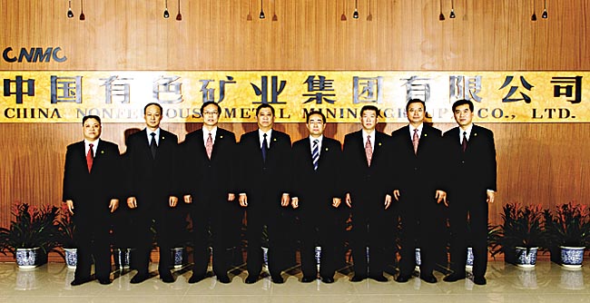 中國(guó)有色集團(tuán)領(lǐng)導(dǎo)班子成員。左起:副總經(jīng)理嚴(yán)弟勇,副總經(jīng)理孫加林,黨委副書(shū)記、紀(jì)委書(shū)記許樹(shù)森,總經(jīng)理、黨委副書(shū)記羅濤,黨委書(shū)記、副總經(jīng)理張克利,副總經(jīng)理江浩,副總經(jīng)理陶星虎,總會(huì)計(jì)師武翔 |