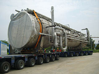 | 二三公司按照模塊化施工制作的大型設(shè)備。 | 中國的核電事業(yè)匯聚了共和國的幾代精英:雙鬢如霜的創(chuàng)業(yè)元老,縱馬南北的核工業(yè)建設(shè)中堅(jiān),壯志凌云的新一代英才。如今,隨著“十一五”規(guī)劃的發(fā)布與實(shí)施,我國全面步入核電發(fā)展新時(shí)期。半個(gè)世紀(jì)的奮斗終于向世界證明:起步于艱難時(shí)期的中國核工業(yè),已成功邁向一個(gè)新時(shí)代。這既是對(duì)20世紀(jì)的告別,也是中國核工業(yè)奮起追趕世界一流目標(biāo)的一種開始。風(fēng)雨同舟、前赴后繼、頑強(qiáng)拼搏、改革創(chuàng)新,在中國核工業(yè)的發(fā)展進(jìn)程中,中國核工業(yè)建設(shè)集團(tuán)公司下屬的中國核工業(yè)第二三建設(shè)公司(以下簡稱“二三公司”)激情演繹了“創(chuàng)新發(fā)展、勇當(dāng)重任”的深刻內(nèi)涵,其間創(chuàng)業(yè)艱辛、奮斗曲折。無數(shù)為核電事業(yè)大發(fā)展付出青春和熱血的創(chuàng)業(yè)者,鑄就了中國核電核島自主建設(shè)安裝的輝煌,實(shí)現(xiàn)著產(chǎn)業(yè)報(bào)國的理想,贏得了國際同行的高度尊重。