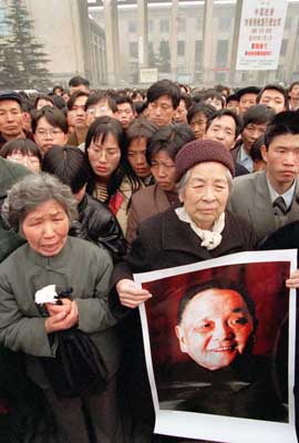 鄧小平追悼會(huì)那天,革命歷史博物館前聚集很多人