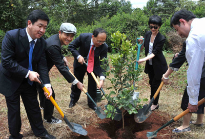 由聯(lián)合國(guó)環(huán)境規(guī)劃署和新華社非洲總分社共同主辦的“明月行動(dòng)·走進(jìn)非洲”大型環(huán)保公益活動(dòng)29日在肯尼亞首都內(nèi)羅畢正式開(kāi)幕,本次活動(dòng)旨在研討世界環(huán)境保護(hù)和可持續(xù)發(fā)展進(jìn)程中面臨的諸多問(wèn)題,與會(huì)人士還將資助聯(lián)合國(guó)立項(xiàng)幫扶的非洲學(xué)校及到肯尼亞貧困地區(qū)進(jìn)行環(huán)保宣傳。 聯(lián)合國(guó)副秘書(shū)長(zhǎng)、聯(lián)合國(guó)環(huán)境規(guī)劃署執(zhí)行主任阿希姆·施泰納在會(huì)上說(shuō),環(huán)境署很榮幸與中方,特別是中國(guó)媒體共同合作舉辦此次環(huán)保公益活動(dòng),以期使社會(huì)各界可以有機(jī)會(huì)共同交流環(huán)境保護(hù)及可持續(xù)發(fā)展的經(jīng)驗(yàn)。 施泰納表示,環(huán)境署感謝中國(guó)政府和企業(yè)多年來(lái)為幫助非洲開(kāi)發(fā)資源、提高民眾生活水平方面做出的努力。中國(guó)總理溫家寶在去年召開(kāi)的中非合作論壇第四屆部長(zhǎng)級(jí)會(huì)議上再次把幫助非洲發(fā)展綠色經(jīng)濟(jì)、實(shí)現(xiàn)可持續(xù)發(fā)展作為中非合作首要項(xiàng)目。非洲擁有巨大的資源開(kāi)發(fā)潛力,環(huán)境署希望中國(guó)能夠幫助非洲實(shí)現(xiàn)互利互惠的資源開(kāi)發(fā)模式,更好地利用當(dāng)?shù)乜稍偕Y源。 肯尼亞副總統(tǒng)穆西約卡在會(huì)上說(shuō),肯尼亞與中國(guó)多年來(lái)一直保持著各領(lǐng)域良好的合作關(guān)系。他認(rèn)為,肯尼亞是中國(guó)企業(yè)走進(jìn)非洲綠色經(jīng)濟(jì)的最好落腳點(diǎn),自上世紀(jì)90年代,已經(jīng)有很多中國(guó)企業(yè)為非洲及肯尼亞發(fā)展做出了貢獻(xiàn),“中國(guó)一直是非洲的好朋友”,肯尼亞歡迎與中國(guó)在建設(shè)綠色經(jīng)濟(jì)、提升旅游合作等各領(lǐng)域進(jìn)一步拓寬往來(lái),希望與中國(guó)一道為實(shí)現(xiàn)更好世界共同努力。 會(huì)上,活動(dòng)主辦方代表新華社總經(jīng)理室副總經(jīng)理程小玲向聯(lián)合國(guó)環(huán)境規(guī)劃署捐贈(zèng)一幅小學(xué)生手繪環(huán)保畫(huà)卷,這幅畫(huà)卷由北京芳草地小學(xué)40余名來(lái)自世界各地的學(xué)生共同繪制,旨在幫助推進(jìn)和宣傳全球共同支持環(huán)境保護(hù)和可持續(xù)發(fā)展的口號(hào)。隨后,與會(huì)代表在聯(lián)合國(guó)環(huán)境規(guī)劃署的植樹(shù)園攜手共植明月環(huán)保樹(shù),為每年植樹(shù)70億棵的目標(biāo)作出自己的貢獻(xiàn)。 當(dāng)天,新華社非洲總分社社長(zhǎng)王朝文、聯(lián)合國(guó)環(huán)境規(guī)劃署官員、環(huán)保藝人周迅和蘇有朋以及中國(guó)企業(yè)和在肯華人華僑代表等近百人共同與會(huì)。由聯(lián)合國(guó)環(huán)境規(guī)劃署和新華社新聞研究所等機(jī)構(gòu)及相關(guān)媒體聯(lián)合發(fā)起的2009年全球十大環(huán)保新聞和中國(guó)十大環(huán)保新聞評(píng)選活動(dòng)也將于當(dāng)天揭曉。