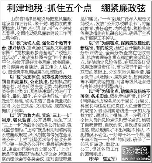 利津地稅:抓住五個(gè)點(diǎn) 繃緊廉政弦