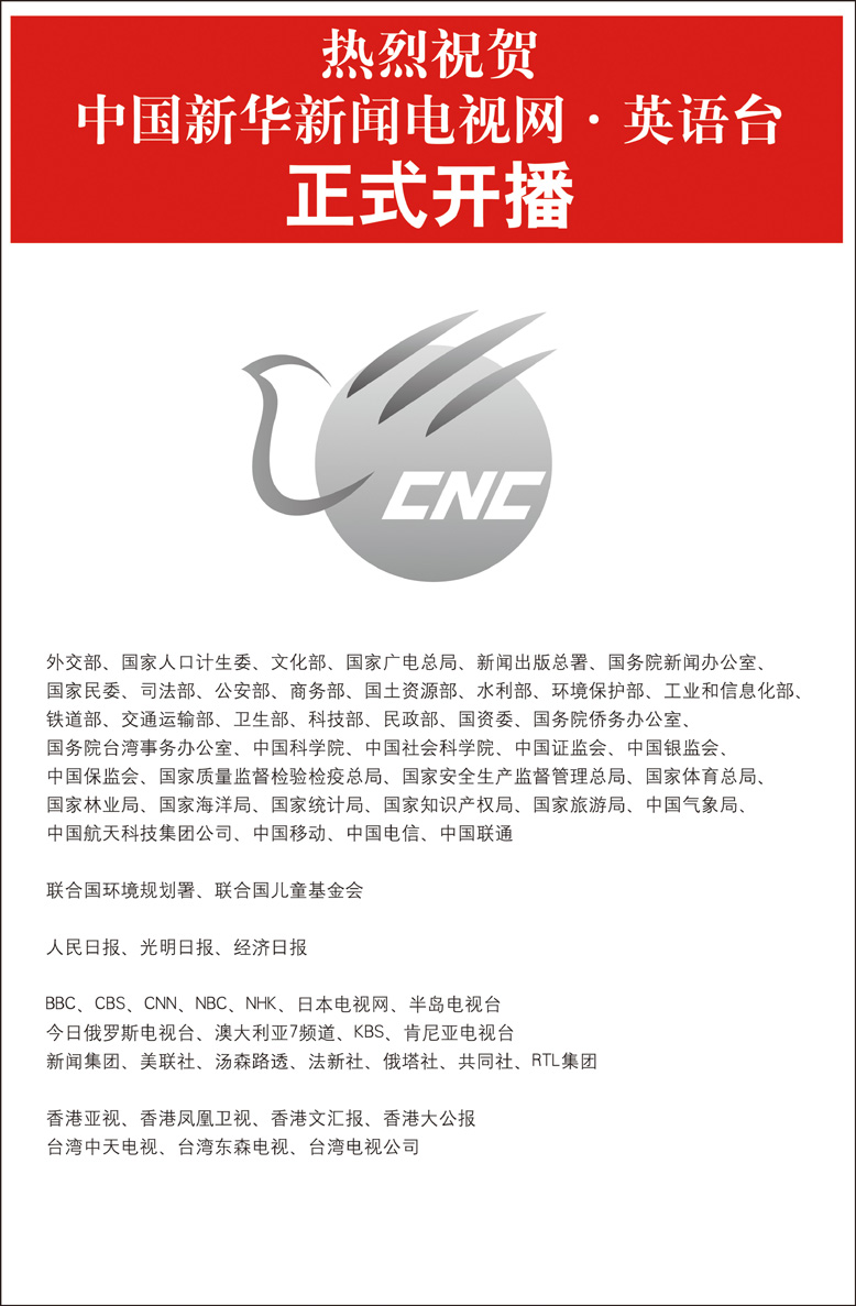 中國(guó)新華新聞電視網(wǎng)英語(yǔ)臺(tái)正式開(kāi)播