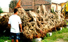 北海市一位根雕愛(ài)好者日前在靈山縣尋獲一個(gè)樹(shù)齡超過(guò)250年的荔枝樹(shù)根,長(zhǎng)9.6米,寬2.8米。一名廣東客商提出用價(jià)值60萬(wàn)元奔馳車(chē)交換被其謝絕。