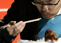 1月10日,一名男子在日本東京的餐廳里拿筷子用餐。日本西部的一個(gè)中學(xué)計(jì)劃要將筷子的使用技巧納入其入學(xué)考試項(xiàng)目,考試時(shí)學(xué)生要用筷子將一個(gè)盤(pán)子里的珠子、彈球、骰子和豆子在10分鐘內(nèi)轉(zhuǎn)移到另一個(gè)盤(pán)子里。