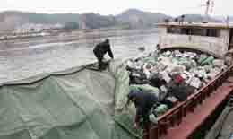 黃埔海關(guān)日前開展了“春潮2007”海上緝私專項行動,查獲海上走私案件33宗,有效遏制了春節(jié)前后海上走私“紅油”、“應(yīng)節(jié)商品”等走私活動的回潮趨勢。圖為黃埔海關(guān)緝私警察在現(xiàn)場檢查查獲的廢舊電腦、電視等走私物品。