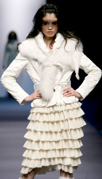 時至今日,傳統(tǒng)的老式皮草制品已經(jīng)屬于明日黃花。不久前舉行的“2007香港國際毛皮時裝展”是全球皮草行業(yè)的盛事,展現(xiàn)了眾多色彩斑斕、風(fēng)情萬種的皮草樣品,折射出新形勢下全球皮草服裝的新趨勢,也反映了皮草服裝已經(jīng)從“隆重”過渡到“休閑”,從以秋冬大衣為主過渡到春夏流行時裝的轉(zhuǎn)變歷程。