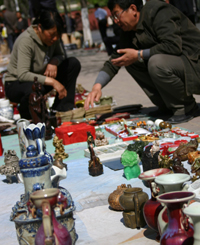 張慶淮指著鑒定現(xiàn)場一件綠色的陶俑說:“如果是真品,這件陶俑市場價(jià)格至少幾十萬元,但我們長年搞這行的,一眼就能看出這是一件贗品,釉色經(jīng)過作舊處理,黯淡無光,造型也很別扭。”據(jù)華夏物證鑒定中心專家毛曉滬、北京故宮博物院副研究員金運(yùn)昌等幾位鑒定專家介紹,他們跑遍全國20多個城市鑒定后發(fā)現(xiàn),市場贗品率達(dá)90%以上。眾多收藏者因?yàn)椴欢b賞,購買了大量贗品,一些不負(fù)責(zé)任的專家出具真品鑒定證書,最后市場不認(rèn)同,壓在手里賣不出去,導(dǎo)致血本無歸。