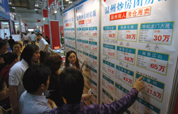 5月17日,購房者在房交會上關注溫州炒房團房源。
