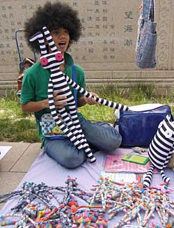 網(wǎng)絡(luò)上,一位曾經(jīng)參觀過“創(chuàng)意市集”的網(wǎng)友在自己的博客上這樣寫道:“襪子,那么容易被忽視的,卻在她的手里有了鮮活的生命!