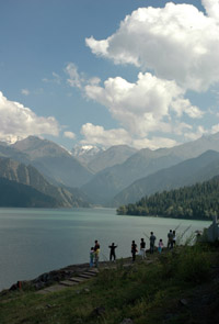 游客們陶醉在天池美景中。本報(bào)記者:劉愷 攝 |