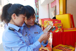9月21日,廣西靖西縣食品監(jiān)管和工商工作人員在檢查月餅生產(chǎn)日期和產(chǎn)品質(zhì)量。 當日,廣西靖西縣組織工商、物價、食品藥品監(jiān)管、衛(wèi)生監(jiān)督等部門,聯(lián)合開展食品市場大檢查活動,以維護流通領域產(chǎn)品質(zhì)量和食品安全,查處、打擊合謀漲價、囤積居奇、哄抬物價以及通過抬高等級、短缺數(shù)量、以假充真、以次充好等欺詐手段變相提高價格等。 |