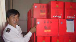 9月26日,寧夏出入境檢驗(yàn)檢疫局的工作人員正向記者指出“寧夏紅”枸杞酒出口國(guó)外必須在食品包裝上加施檢驗(yàn)檢疫標(biāo)志。近年來,寧夏紅枸杞產(chǎn)業(yè)集團(tuán)公司嚴(yán)把質(zhì)量關(guān),其生產(chǎn)的中國(guó)名牌產(chǎn)品“寧夏紅”系列枸杞酒因?yàn)橘|(zhì)量好、品牌響,已經(jīng)出口到美國(guó)和英國(guó)等10多個(gè)國(guó)家。 |