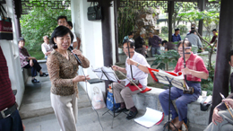 為貫徹“民生第一”原則,從2006年,常州市開始將紅梅公園、椿桂園、薔薇園生態(tài)濕地公園、東方綠地公園免費開放。2007年,又把新建的荊川公園、青楓公園二期、荷園、武進新天地公園、淹城森林公園二期、開花溪公園也全部免費開放。至此,常州市的所有公園全部免費開放。圖為常州紅梅公園內(nèi)的市民在唱昆曲。