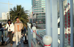 ?陂_通電梯天橋,新年服務(wù)民生。1月1日,市民搭乘新開通的電梯過天橋。