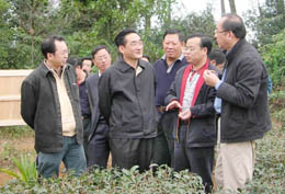 財(cái)政部副部長(zhǎng)、國(guó)務(wù)院海南農(nóng)墾管理體制改革工作小組組長(zhǎng)廖曉軍(左二)考察海南農(nóng)墾(左一為海南農(nóng)墾總局局長(zhǎng)王一新)。楊平昌