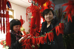 2月4日,立春節(jié)飾品市場,火紅的辣椒讓人愛不釋手。4日立春,天津節(jié)日市場紅紅火火,人們購買各種吉祥飾品裝點(diǎn)生活,祈盼新一年事事如意、健康平安。