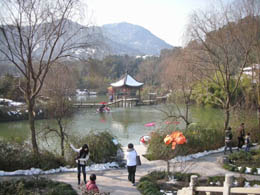 2月14日正值農(nóng)歷正月初八,素有“十里梅花香雪!敝Q的杭州余杭超山風(fēng)景區(qū)鑼鼓震天。一年一度的“超山梅花節(jié)”在這里拉開了帷幕。 超山為江南三大賞梅勝地之一,超山梅花尤以“古、廣、奇”三絕而聞名于世,素有“十里梅花香雪海”之美譽(yù)。初春二月,花蕾綻放,方圓十里遙天映白如飛雪漫空,甚是壯觀。已故金石書畫大師吳昌碩生前酷愛超山梅花,曾留下“十年不到香雪海,梅花憶我我憶梅,何時(shí)買棹冒雪去,便向花前傾一杯”的千古佳句,并選擇身后與超山梅花相伴。至今,這里仍保留有吳昌碩墓和紀(jì)念館! 據(jù)杭州市余杭區(qū)旅游局工作人員介紹,今年,由于氣候適宜,梅花花蕾茂密,2月初陸續(xù)開始盛放,元宵節(jié)前后將最為旺盛,可持續(xù)到3月上旬。主辦方在梅花節(jié)期間還推出了“‘梅花憶我我憶梅’詩詞楹聯(lián)民歌征文”“我的名字叫‘梅花’”“賞超山梅花迎北京奧運(yùn)”等豐富多彩的互動(dòng)活動(dòng)。梅花節(jié)期間,邀三兩好友或攜家?guī)Э诘匠脚菀粔鼐G茶、賞十里梅海、登千級石階將別有一番情趣。