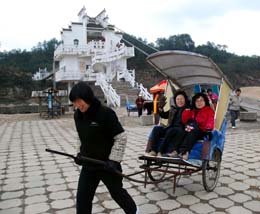 安徽黃山市前段時(shí)間遭遇的雪災(zāi)造成旅行團(tuán)退團(tuán)400多個(gè),當(dāng)?shù)匦羌?jí)飯店接待量大幅下降。目前,黃山的各大景區(qū)已全面恢復(fù)正常運(yùn)營(yíng),游客接待量開(kāi)始逐步回升。圖為韓國(guó)游客在黃山花山謎窟景區(qū)游覽。