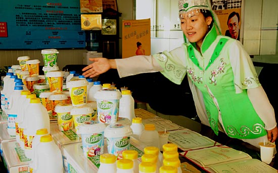全國少數(shù)民族特需用品定點生產(chǎn)企業(yè)銀川市金河乳業(yè)有限公司的工作人員正在介紹其系列清真乳品。