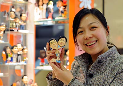 時下,“克隆”自己成為太原不少時尚人士的新寵,顧客只需提供一張個人近期生活照,商家對照相片,用塑脂等特殊材料捏制出與顧客相貌十分神似的另一個“自己”,配以彩繪,造型逼真,惹人喜愛。
