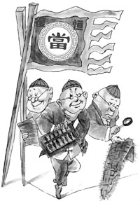 復(fù)恒當(dāng)雖然小,但在管理上卻非常嚴(yán)格,制定有整套的規(guī)則和紀(jì)律。每天掛招牌是雷打不動(dòng)的第一件大事,5點(diǎn)鐘必須把招牌掛到百米多遠(yuǎn)的十字路口,以招攬顧主。收當(dāng)?shù)墓駟T在柜臺(tái)前不能坐,從早上6點(diǎn)站到晚上10點(diǎn),要站十四五個(gè)小時(shí),這可不是一件容易的事,想身居顯位必須具備這樣的鐵功夫。柜員還能說話走動(dòng),學(xué)徒就更加難過了,學(xué)徒進(jìn)號(hào)十年內(nèi)不設(shè)座位,要始終保持“立正”的姿勢(shì),常常引起浮腫病,身子稍有歪斜就要受到訓(xùn)斥。所以,伙計(jì)們給復(fù)恒當(dāng)編了一段順口溜:“當(dāng)鋪飯真難吃,站柜臺(tái)下地獄,沒有金雞獨(dú)立功,莫來這里當(dāng)長(zhǎng)工”。由此可見制度的嚴(yán)厲。在復(fù)恒當(dāng)里,不論是站柜臺(tái)收當(dāng),還是干別的的工作,甚至接待客人,說話、走路、倒茶,處處都有規(guī)章,不守規(guī)矩就要受處分,嚴(yán)重的就被開除。 對(duì)當(dāng)鋪員工的個(gè)人生活和行為也有嚴(yán)格的規(guī)定,不準(zhǔn)沾染上喝酒、看戲、賭博、嫖娼等不良行為。而且不管掌柜還是一般職員,一律不準(zhǔn)攜帶家眷;丶姨接H也有嚴(yán)格的時(shí)間規(guī)定,最多一禮拜,一天也不能超過,也不得早走或推后。有個(gè)職員,回家探親超過五天,當(dāng)鋪以其無故超假,違犯號(hào)規(guī)被開除了,盡管請(qǐng)了當(dāng)?shù)氐募澥亢图胰藖矶啻握f情,也無濟(jì)于事。 對(duì)學(xué)徒的學(xué)習(xí)培養(yǎng)要求更嚴(yán)。每天晚上必須練字,三個(gè)月舉辦一次評(píng)比,若無長(zhǎng)進(jìn),通知其上司領(lǐng)走,叫“倒口袋”。打算盤,要求背口訣、記位數(shù),既要快又得準(zhǔn)。晚上管賬先生結(jié)賬時(shí),讓小伙計(jì)坐下比賽打算盤,故意念得特別快,看誰打得又快又準(zhǔn)。如果兩三次打不對(duì),就把算盤奪了攆出去,以示懲戒。多次考試不及格,就被打發(fā)走人了。 復(fù)恒當(dāng)?shù)漠?dāng)票,更有講究。當(dāng)票是典當(dāng)業(yè)最重要的一張票據(jù),它既是當(dāng)戶押物借錢和贖當(dāng)?shù)淖C明,又是當(dāng)鋪憑以放貸、計(jì)息和保管抵押物登記記賬,驗(yàn)票付還押物的根據(jù)。當(dāng)票作用的兩重性,對(duì)當(dāng)鋪和顧客都非常重要,復(fù)恒當(dāng)十分重視當(dāng)票的制作和填寫。當(dāng)票要求寫清品名、件數(shù)、當(dāng)本、利率和日期。正是為了寫好當(dāng)票,復(fù)恒當(dāng)?shù)膶W(xué)徒規(guī)定每天都要下功夫練毛筆字,要求練到“點(diǎn)如桃,撇如刀”。當(dāng)票的“當(dāng)頭”,按《千字文》天、地、元、黃、宇、宙、洪、荒、日、月、盈、昃十二字順序編號(hào),每月一個(gè)字頭,正月為天字頭,第一筆交易為天字第一號(hào)。值得強(qiáng)調(diào)的是,復(fù)恒當(dāng)?shù)漠?dāng)票有與眾不同的地方。一是把各種當(dāng)物以不同的符號(hào)代替,單衣用“·”,棉衣用“○”,夾衣用“×”,謂之單點(diǎn)、棉圈、夾叉。二是其他當(dāng)鋪收當(dāng)時(shí)在當(dāng)票上臨時(shí)批注“破碎”、“潰爛”、“蟲蛀”、“光板”等字樣,復(fù)恒當(dāng)不是這樣,而是在當(dāng)票上早就印好了這些字樣,用草字專書,獨(dú)具一格,顧客一般不注意,識(shí)字不多的也認(rèn)不出來。這是一個(gè)訣竅,用意有三:一是避免刺激當(dāng)戶,因?yàn)橐患煤玫囊路,在上面寫個(gè)“破”字或“蟲咬”,當(dāng)戶不僅有意見,還容易發(fā)生爭(zhēng)執(zhí),影響生意。二是給當(dāng)鋪留個(gè)后路,當(dāng)物萬一保存不好,受到損失,可以據(jù)此力爭(zhēng);三是打起官司來,當(dāng)鋪輸不了理。這些用意由于表示的方法不同,效果也不一樣,復(fù)恒當(dāng)就比別的當(dāng)鋪更含蓄一些,這也是復(fù)恒當(dāng)高人一籌的地方。 復(fù)恒當(dāng)?shù)馁~目完整清晰。收進(jìn)當(dāng)物時(shí)記入“分當(dāng)賬”,記載當(dāng)日收當(dāng)、贖當(dāng)銀錢出入的有“流水賬”,記載浮存款和借入款項(xiàng)的收支有“往來賬”,登記銀股、身股及股數(shù)銀兩的有“萬金賬”,除此還有“總賬”。