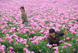 山西長(zhǎng)治市發(fā)揮區(qū)域物流、加工優(yōu)勢(shì),實(shí)施公司加農(nóng)戶種植模式,在市郊大力發(fā)展中草藥種植,并帶動(dòng)周邊區(qū)縣的藥材種植,取得明顯成效。目前,當(dāng)?shù)厮幉姆N植面積達(dá)2萬畝,從事藥材種植的農(nóng)民有6000余戶。圖為農(nóng)民在長(zhǎng)治市郊區(qū)堠北莊鎮(zhèn)成片的芍藥地里進(jìn)行田間管理。 |