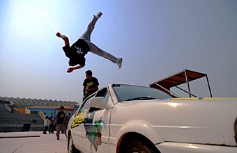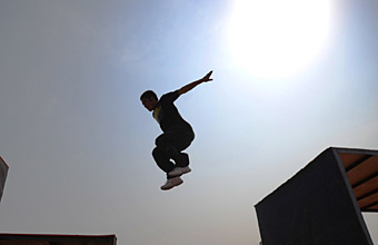 有人把城市的水泥叢林比喻成“死亡墳?zāi)埂,因(yàn)樗拗屏巳祟惢顒?dòng)。現(xiàn)如今,許多國(guó)家的城市中活躍著這么一群飛檐走壁的“健兒”,他們把整個(gè)城市視為游樂(lè)場(chǎng):時(shí)而像輕功高手,從兩層樓高的建筑物上瀟灑地跳到地面上;時(shí)而如同蜘蛛俠,手腳“吸”在墻壁上向上爬;時(shí)而又好似忍者,從一幢樓的頂層縱身一躍,跳到毗鄰樓房的頂層…… 他們,就是城市中一個(gè)新興群體——跑酷一族。